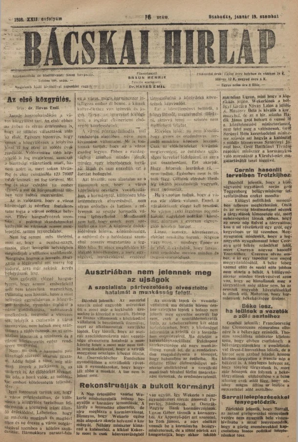 Bácskai Hirlap, 22. évf. 1918. január 19. 16. sz.