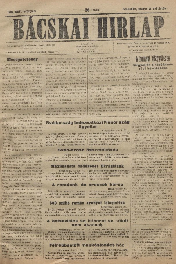 Bácskai Hirlap, 22. évf. 1918. január 31. 26. sz.