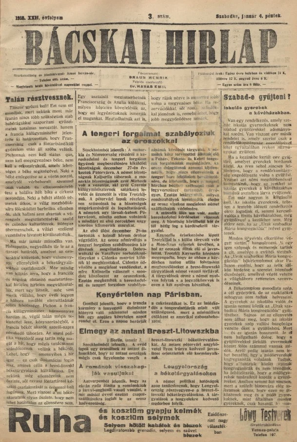 Bácskai Hirlap, 22. évf. 1918. január 4. 3. sz.