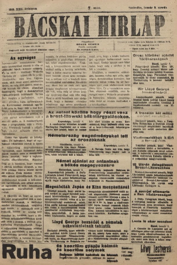 Bácskai Hirlap, 22. évf. 1918. január 9. 7. sz.