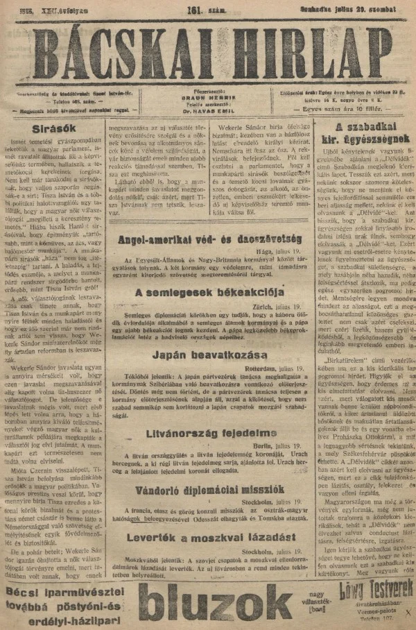 Bácskai Hirlap, 22. évf. 1918. július 20. 161. sz.