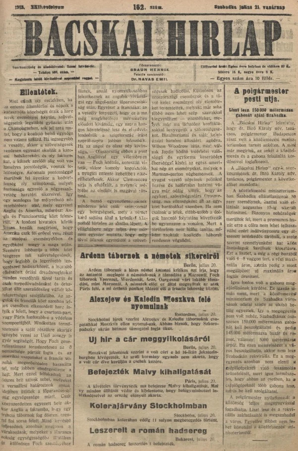 Bácskai Hirlap, 22. évf. 1918. július 21. 162. sz.