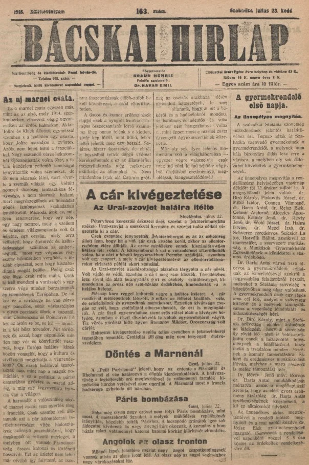 Bácskai Hirlap, 22. évf. 1918. július 23. 163. sz.