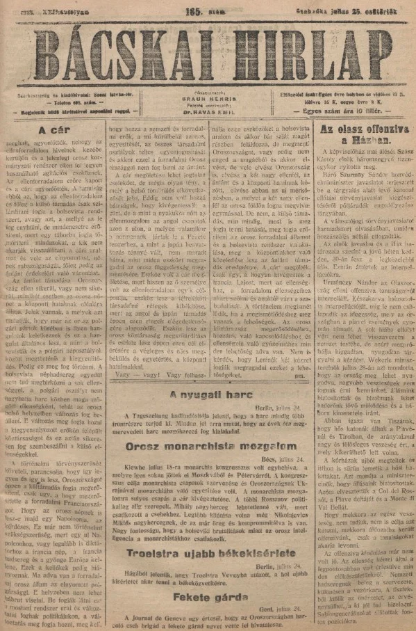Bácskai Hirlap, 22. évf. 1918. július 25. 165. sz.