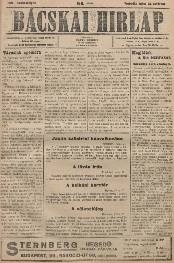 Bácskai Hirlap, 22. évf. 1918. július 28. 168. sz.