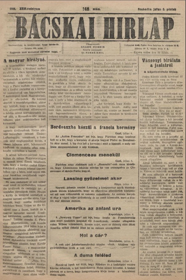 Bácskai Hirlap, 22. évf. 1918. július 5. 148. sz.