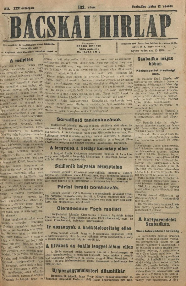 Bácskai Hirlap, 22. évf. 1918. június 12. 132. sz.