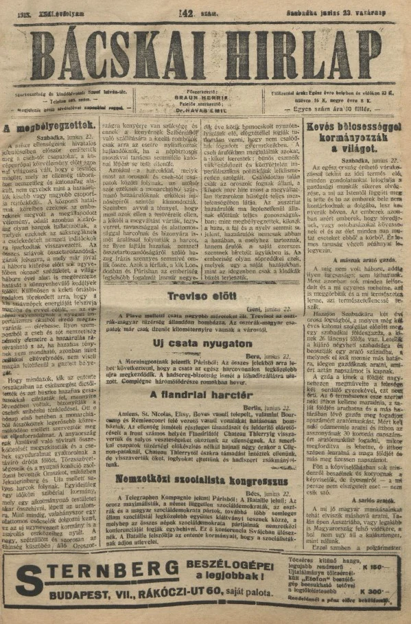 Bácskai Hirlap, 22. évf. 1918. június 23. 142. sz.