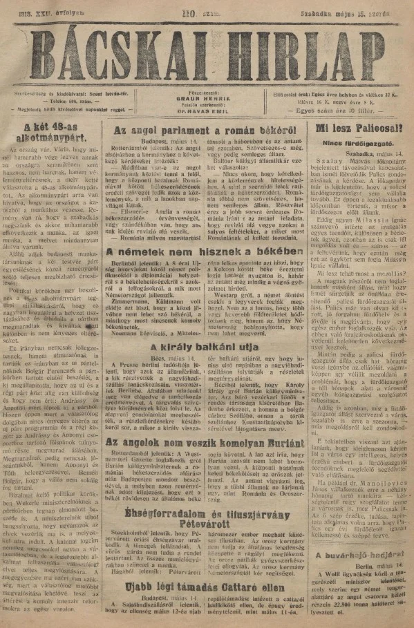 Bácskai Hirlap, 22. évf. 1918. május 15. 110. sz.