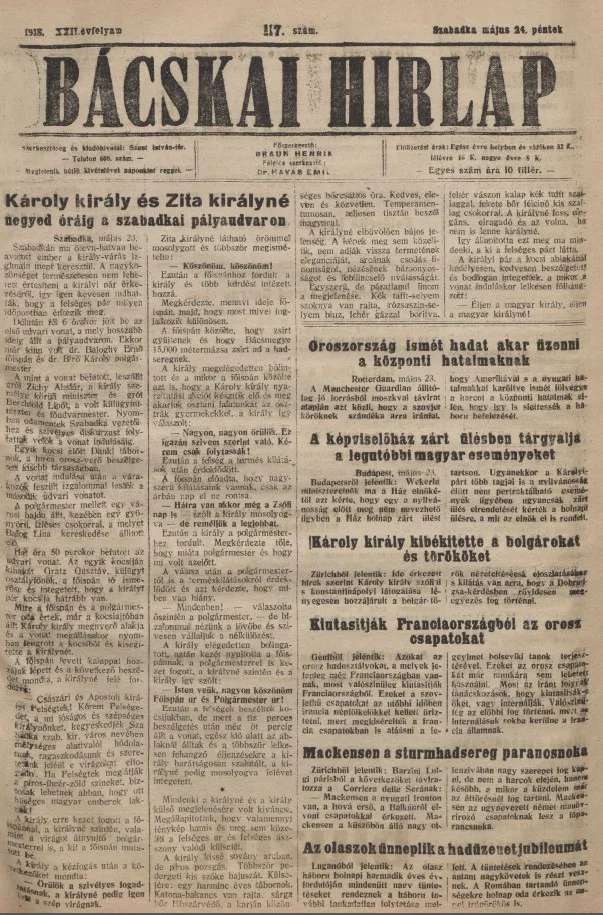 Bácskai Hirlap, 22. évf. 1918. május 24. 117. sz.