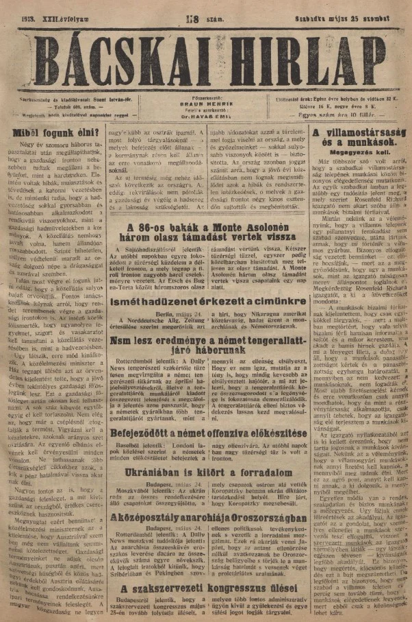 Bácskai Hirlap, 22. évf. 1918. május 25. 118. sz.