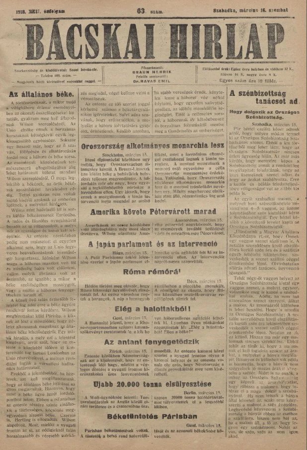 Bácskai Hirlap, 22. évf. 1918. március 16. 63. sz.