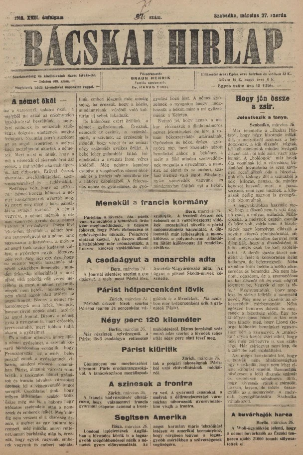 Bácskai Hirlap, 22. évf. 1918. március 27. 71. sz.