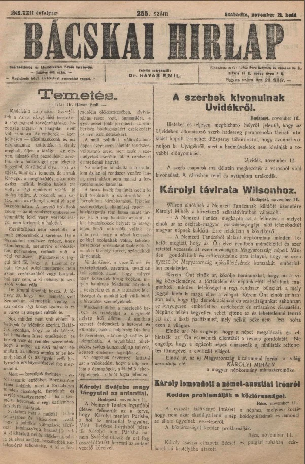 Bácskai Hirlap, 22. évf. 1918. november 12. 255. sz.