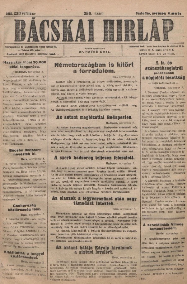 Bácskai Hirlap, 22. évf. 1918. november 6. 250. sz.