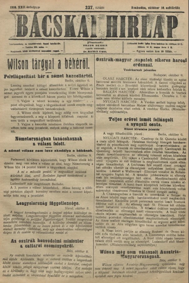 Bácskai Hirlap, 22. évf. 1918. október 10. 227. sz.