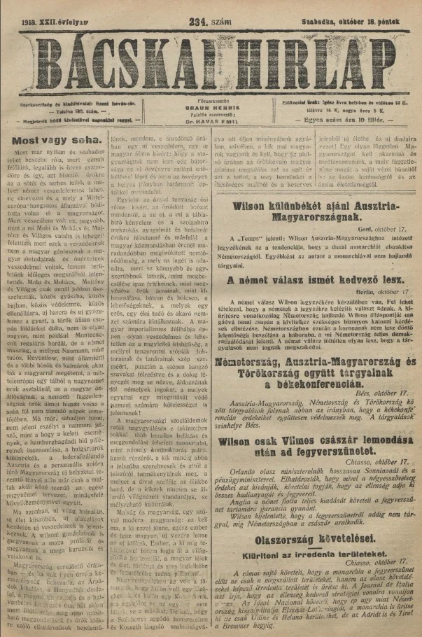 Bácskai Hirlap, 22. évf. 1918. október 18. 234. sz.