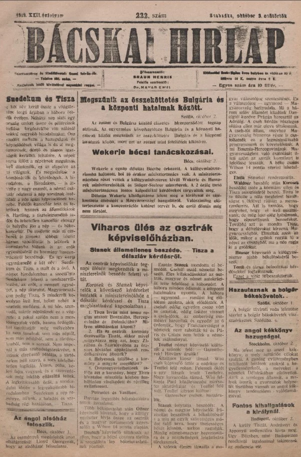 Bácskai Hirlap, 22. évf. 1918. október 3. 222. sz.