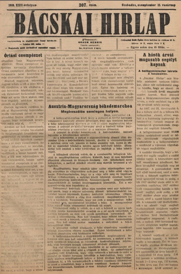 Bácskai Hirlap, 22. évf. 1918. szeptember 15. 207. sz.