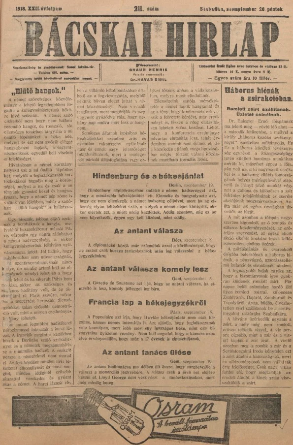 Bácskai Hirlap, 22. évf. 1918. szeptember 20. 211. sz.
