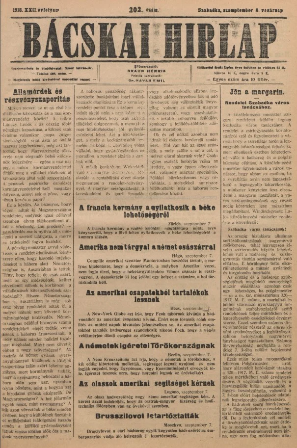 Bácskai Hirlap, 22. évf. 1918. szeptember 8. 202. sz.