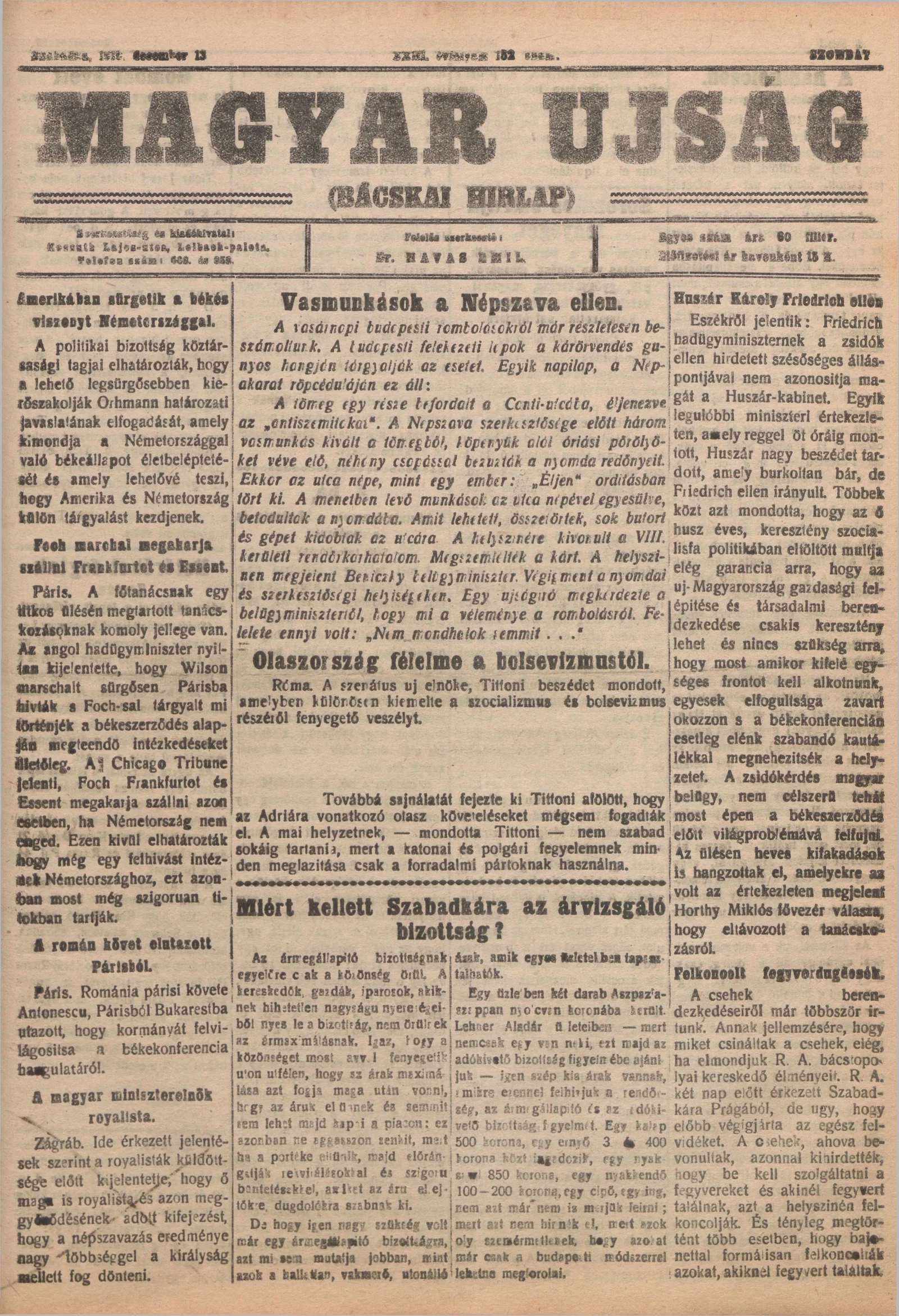Bácskai Hirlap, 23. évf. 1919. december 13. 152. sz.