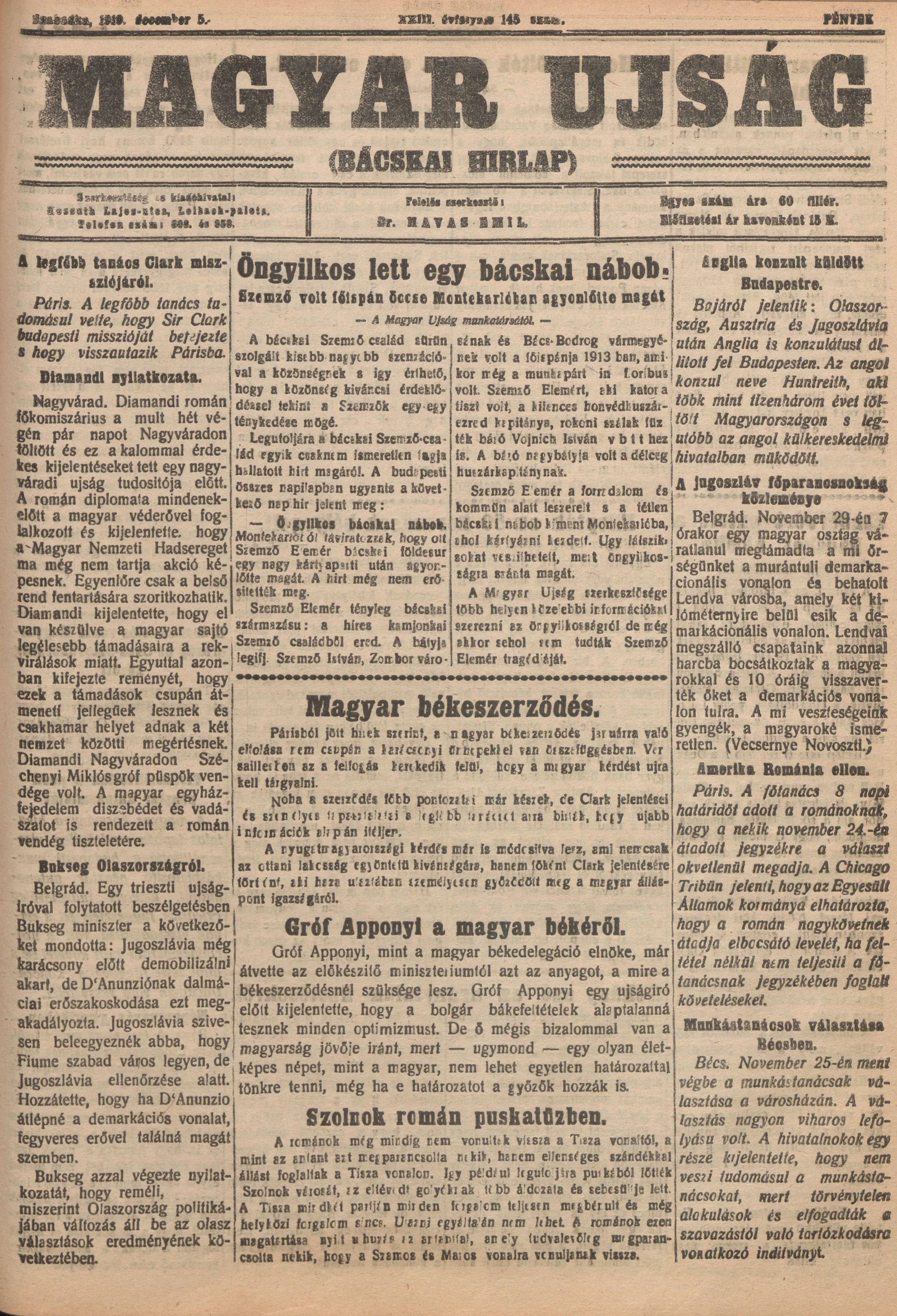 Bácskai Hirlap, 23. évf. 1919. december 5. 145. sz.