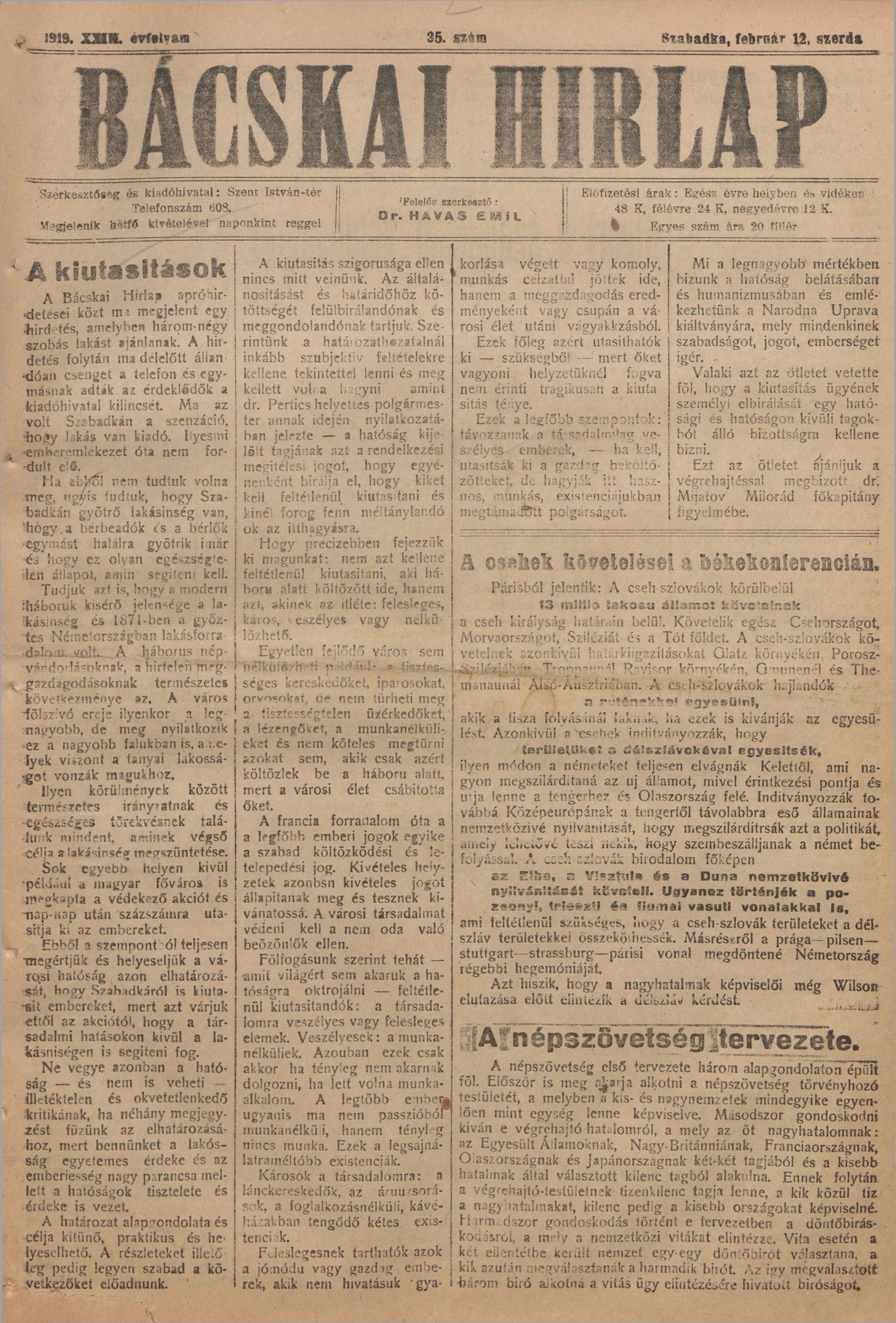 Bácskai Hirlap, 23. évf. 1919. február 12. 35. sz.