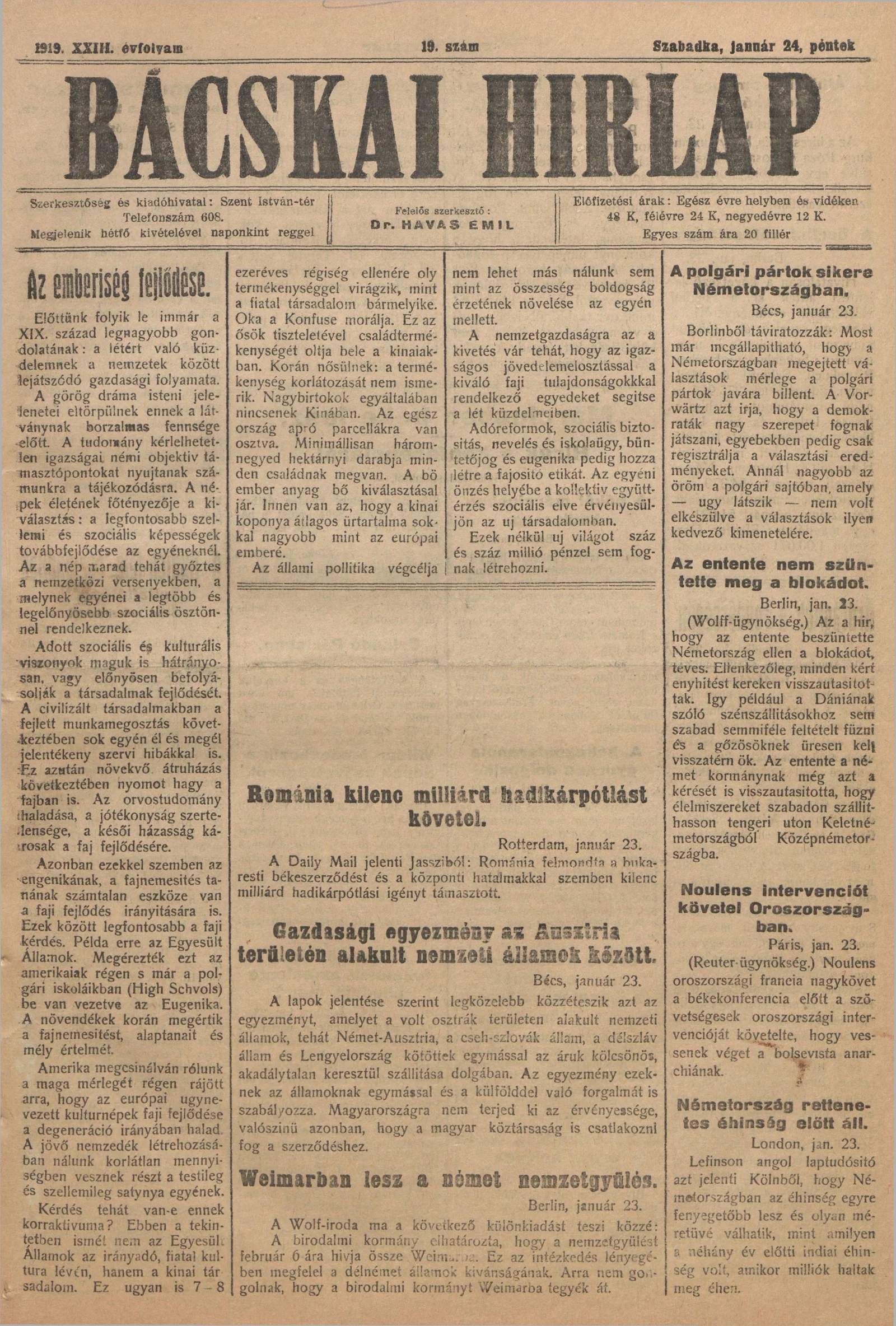 Bácskai Hirlap, 23. évf. 1919. június 24. 19. sz.