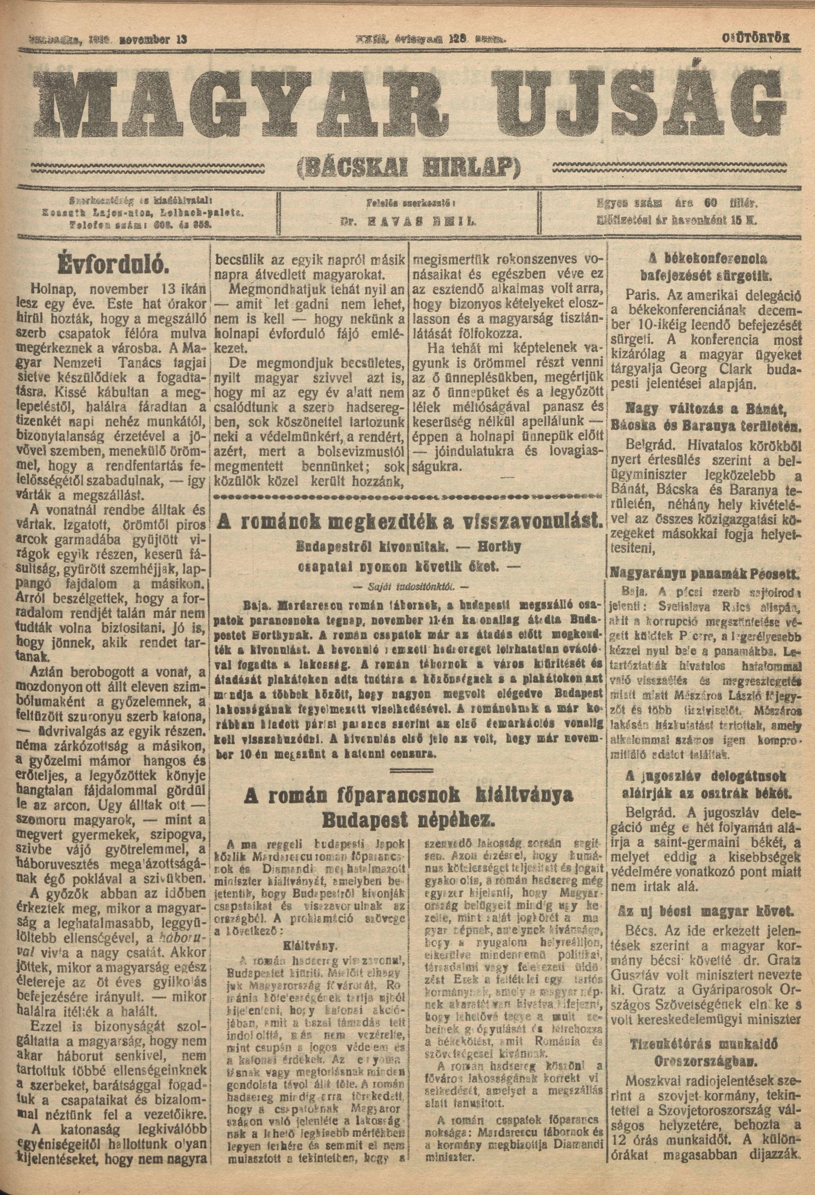 Bácskai Hirlap, 23. évf. 1919. november 13. 128. sz.