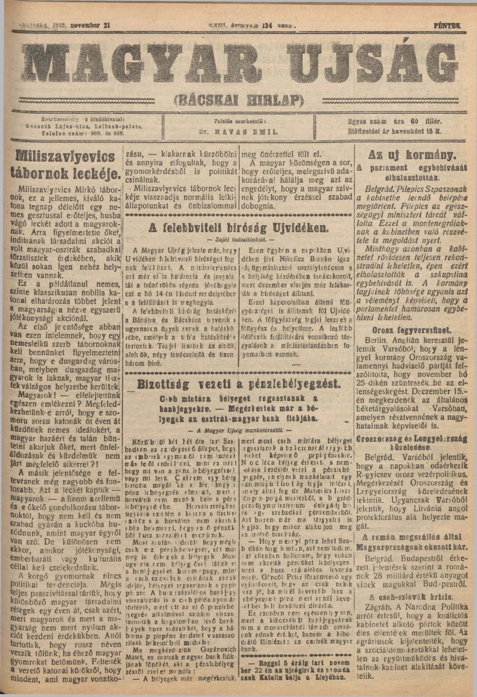 Bácskai Hirlap, 23. évf. 1919. november 21. 134. sz.