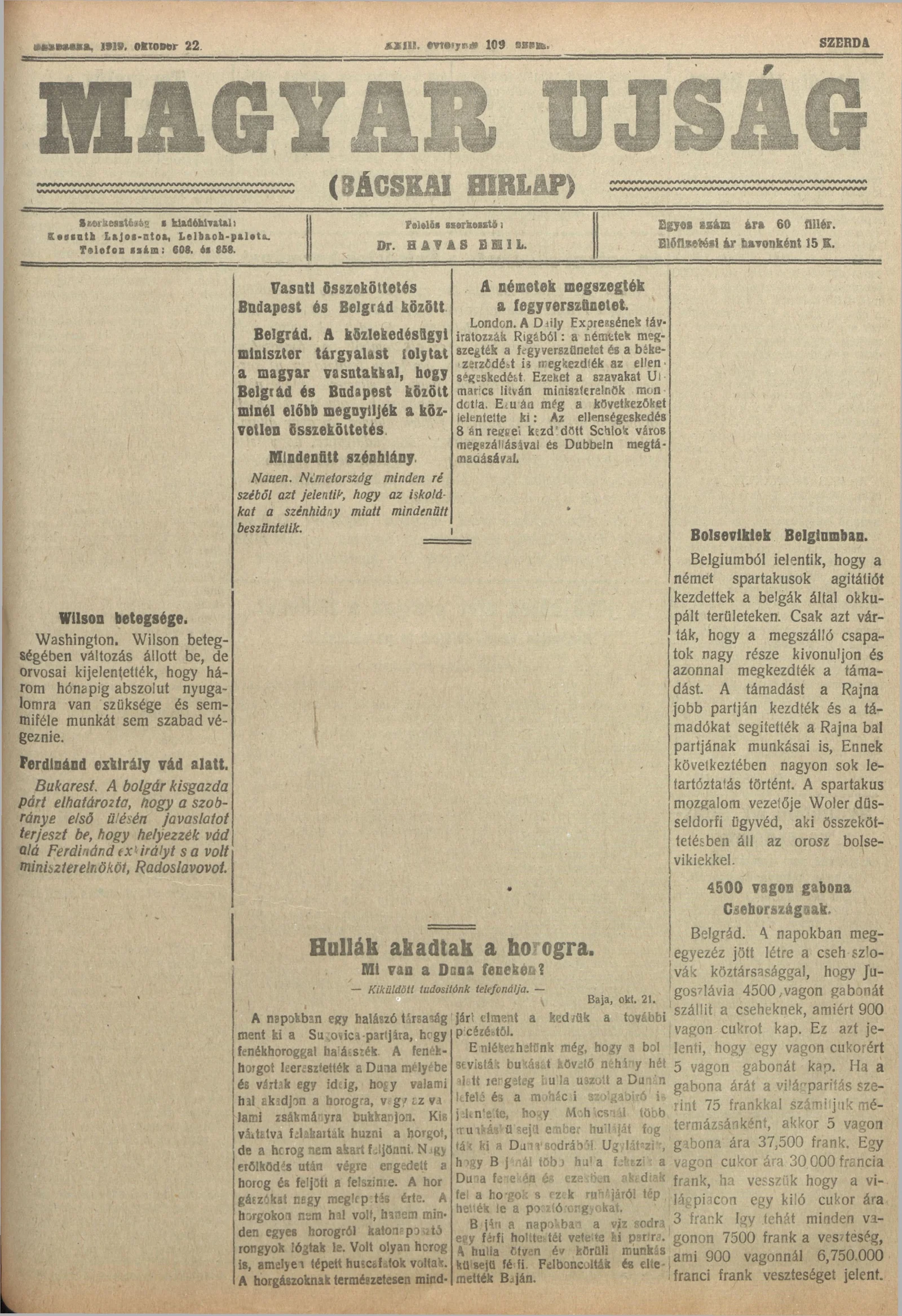 Bácskai Hirlap, 23. évf. 1919. október 22. 109. sz.
