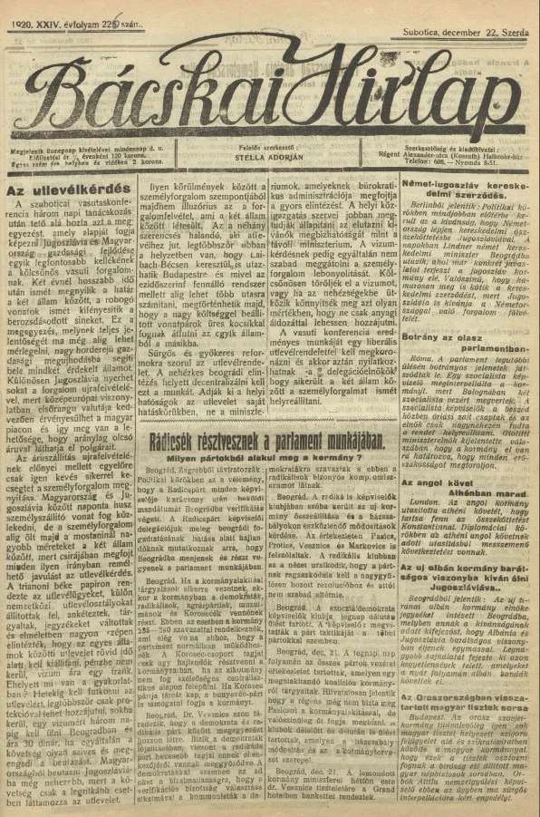 Bácskai Hirlap, 24. évf. 1920. december 22. 226. sz.