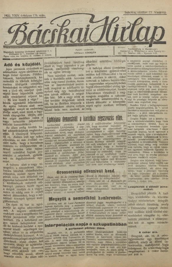 Bácskai Hirlap, 24. évf. 1920. október 17. 176. sz.