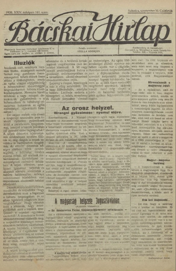 Bácskai Hirlap, 24. évf. 1920. szeptember 30. 161. sz.
