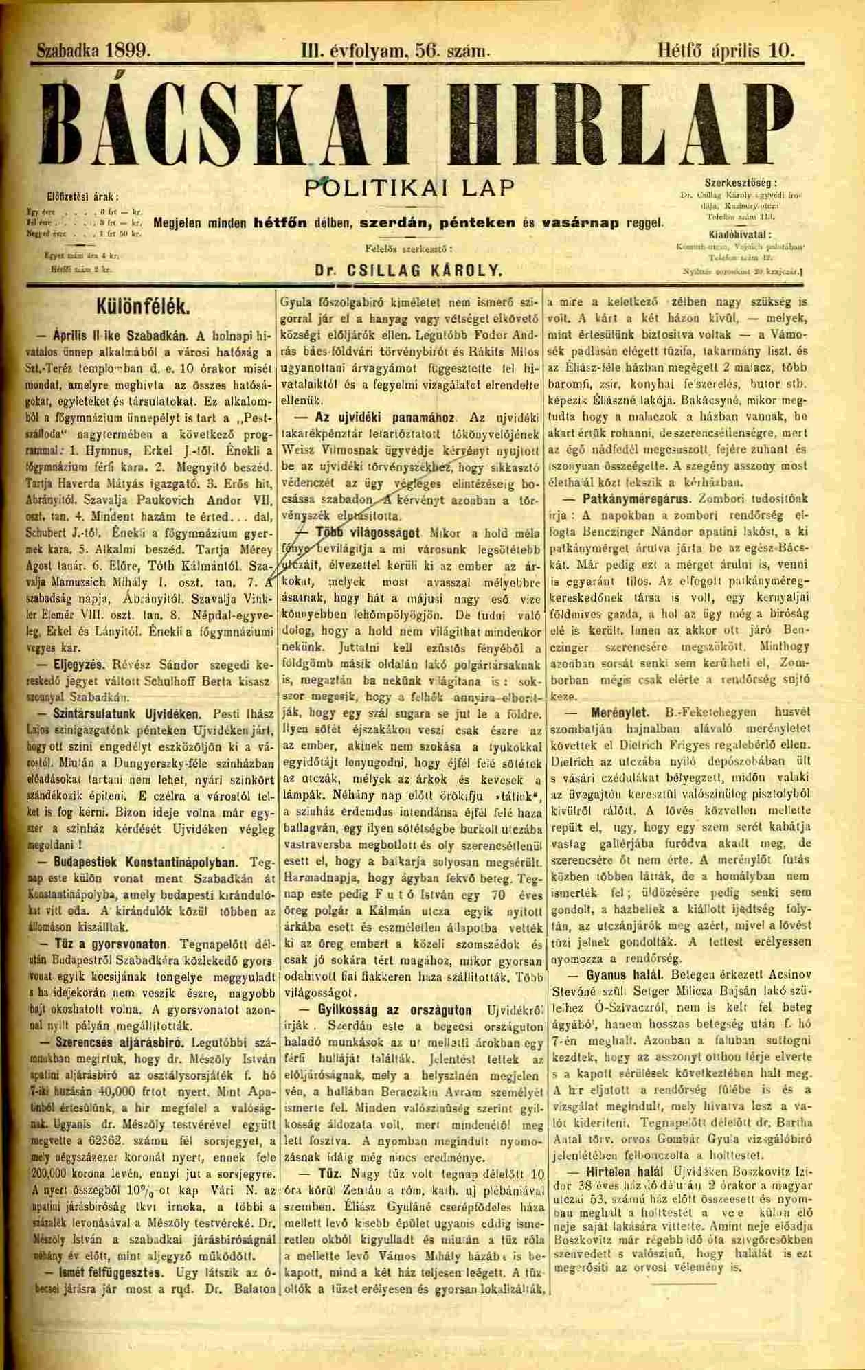 Bácskai Hirlap, 3. évf. 1899. április 10. 56. sz.