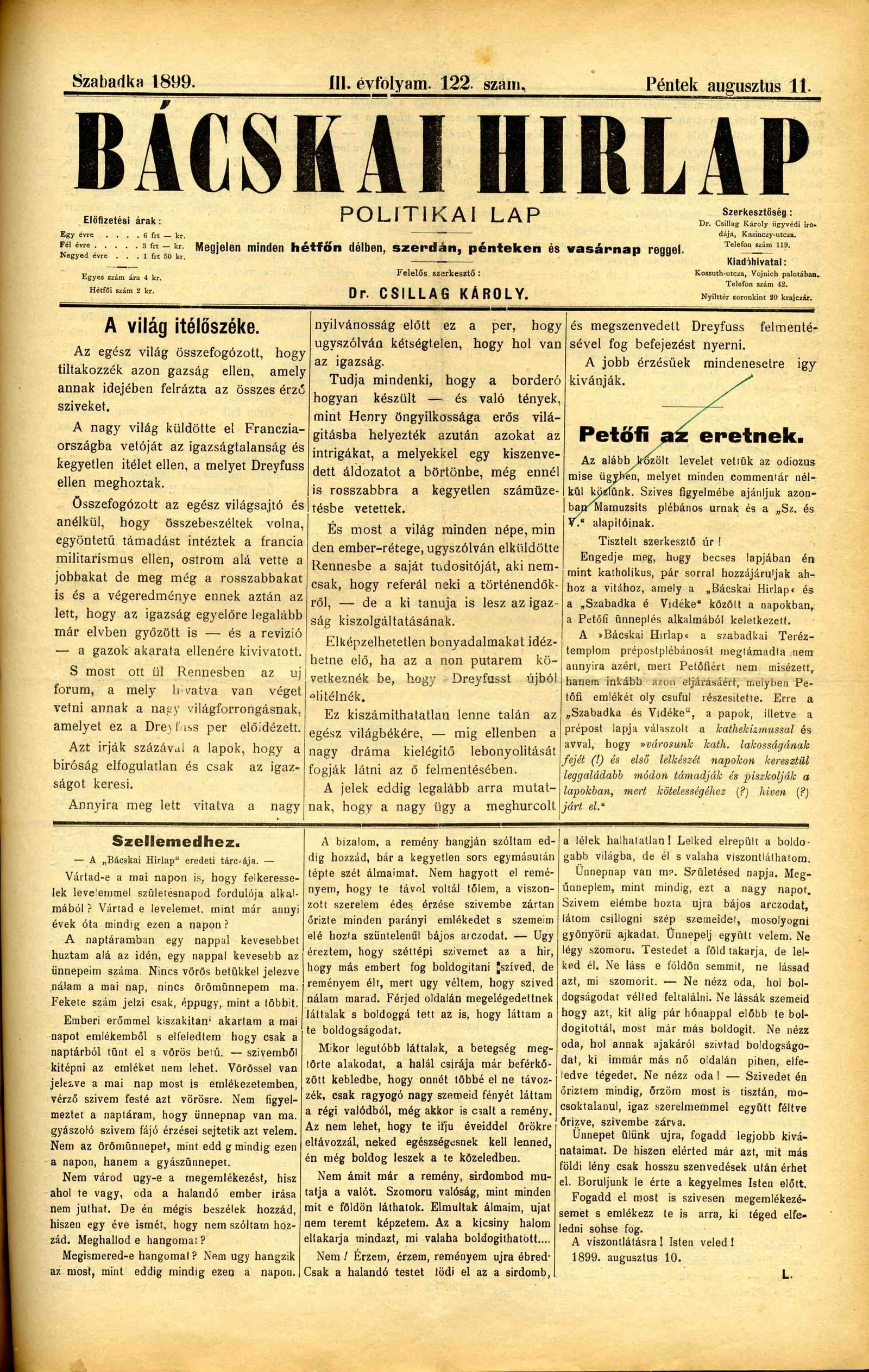 Bácskai Hirlap, 3. évf. 1899. augusztus 11. 122. sz.