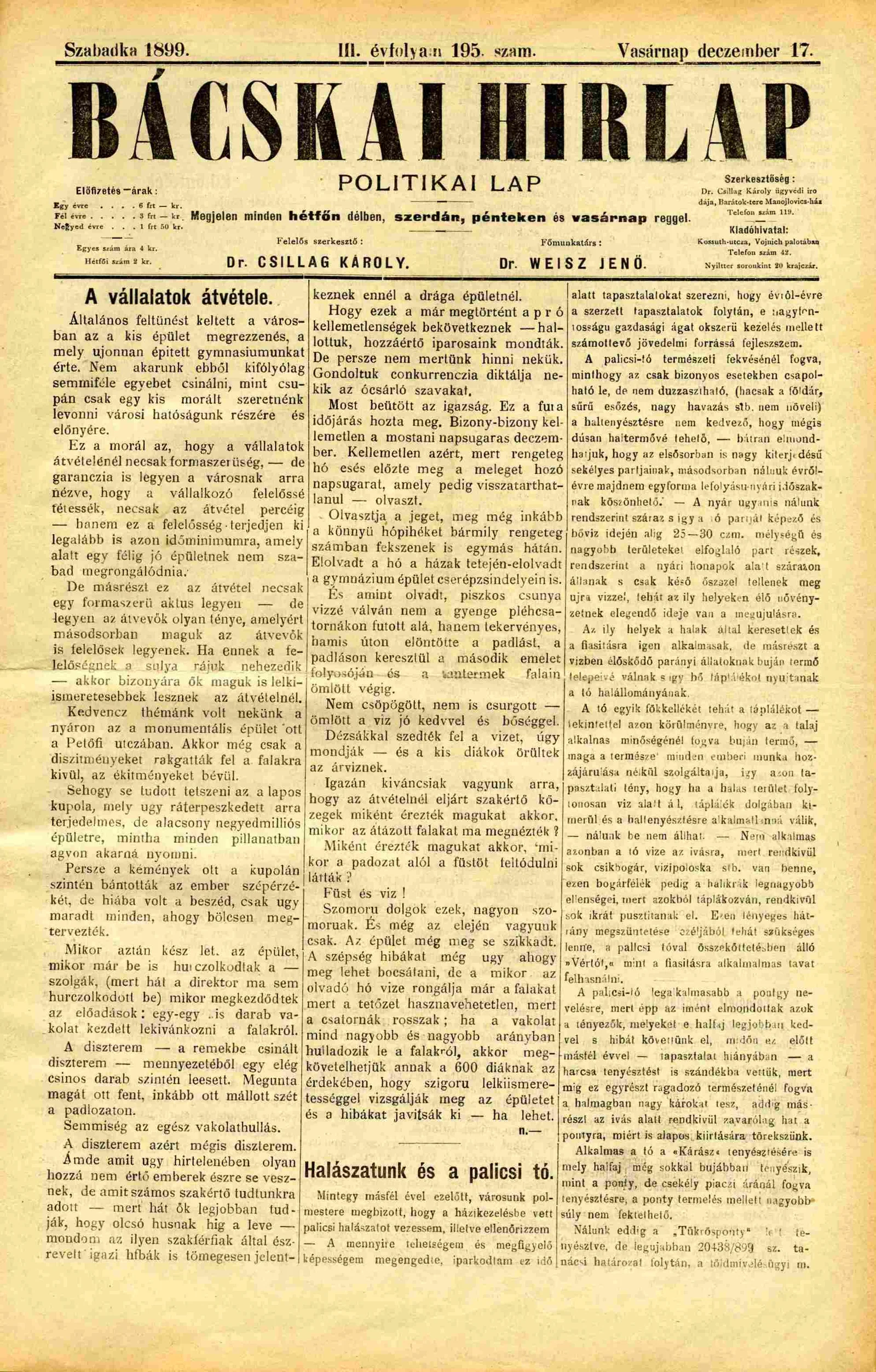 Bácskai Hirlap, 3. évf. 1899. december 17. 195. sz.