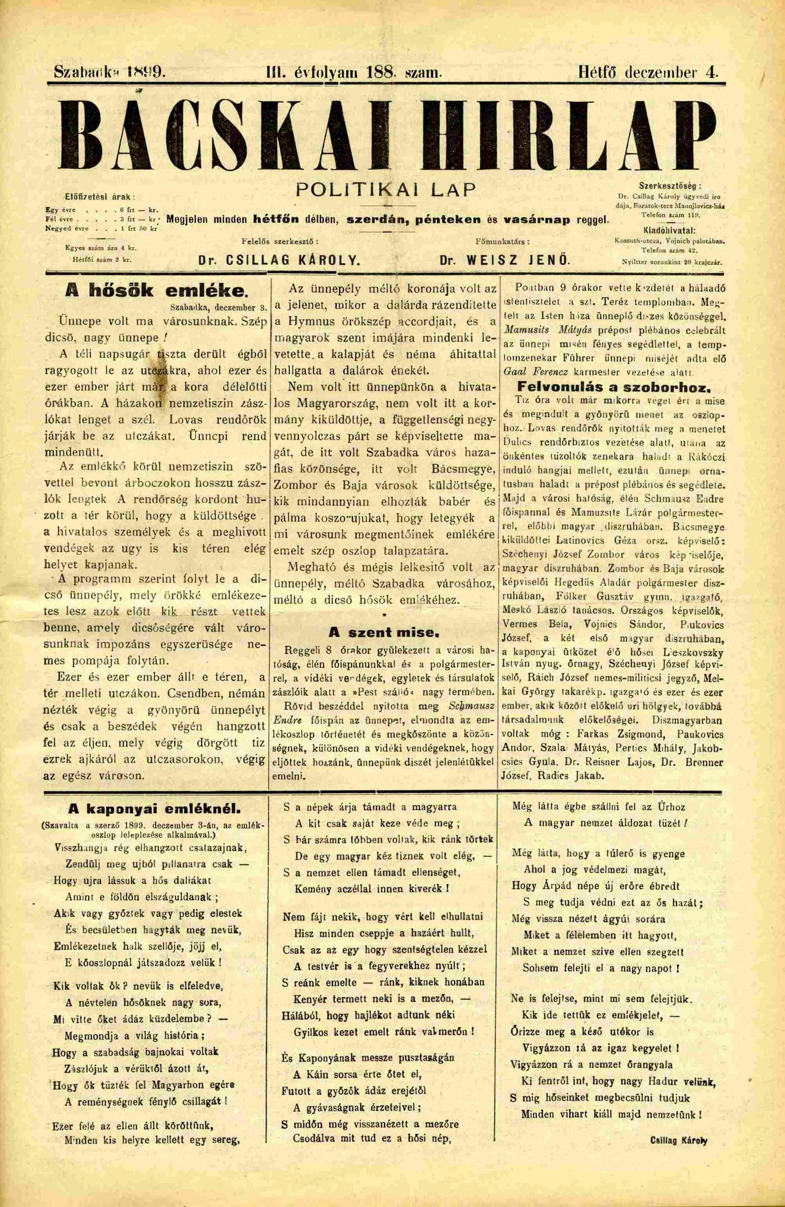 Bácskai Hirlap, 3. évf. 1899. december 4. 188. sz.