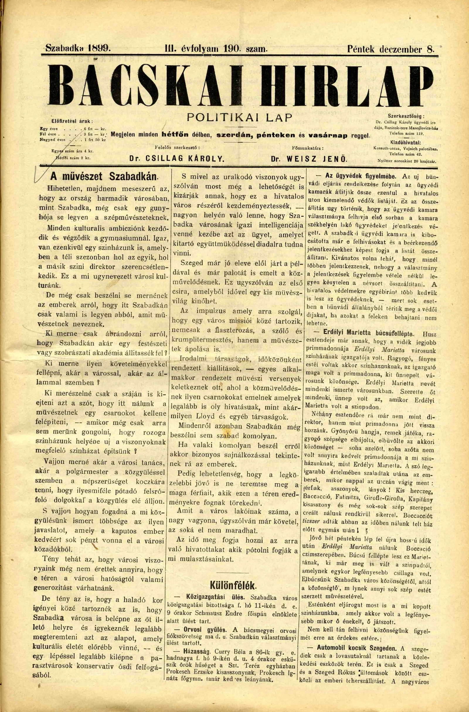 Bácskai Hirlap, 3. évf. 1899. december 8. 190. sz.