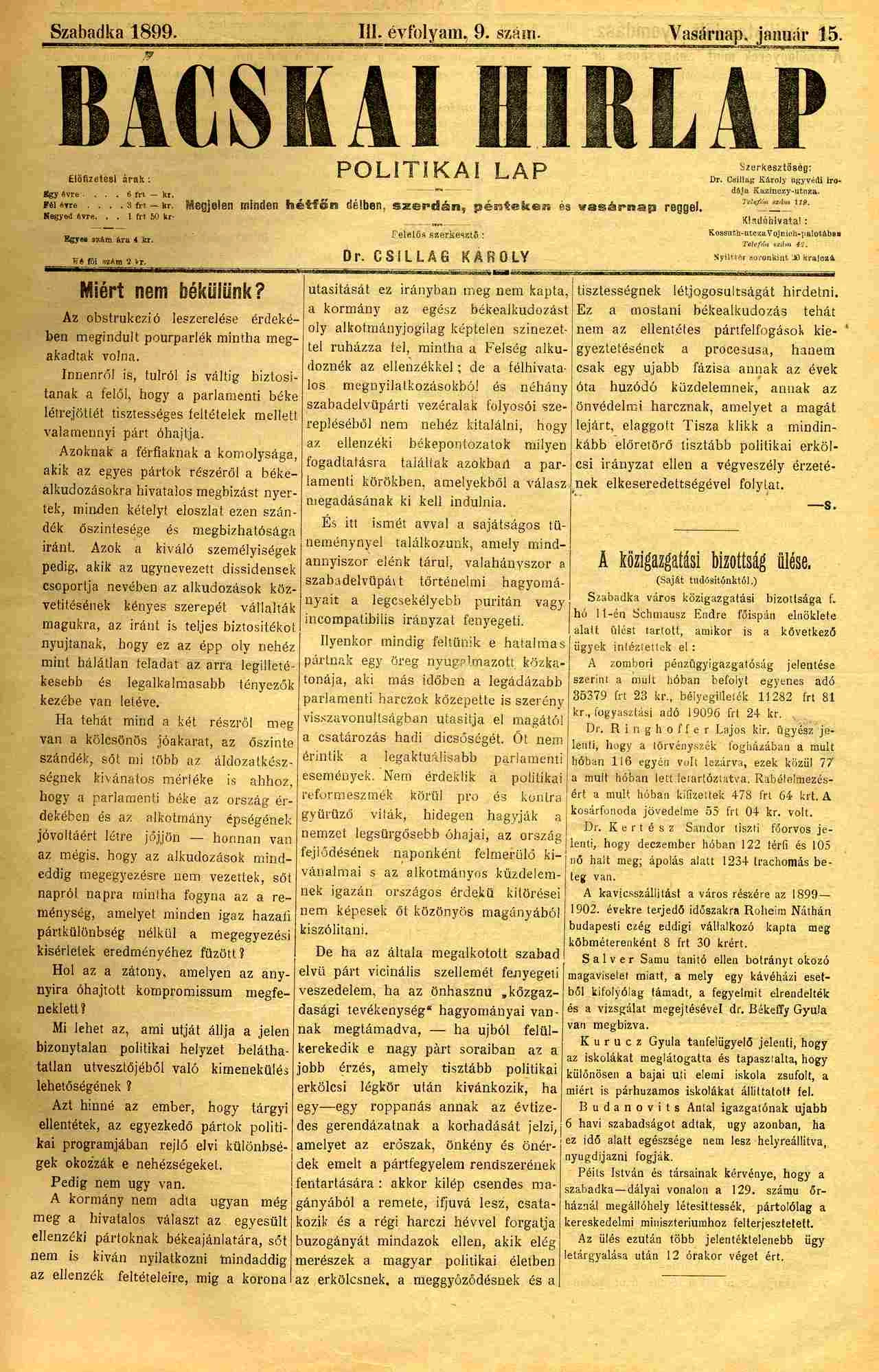 Bácskai Hirlap, 3. évf. 1899. január 15. 9. sz.