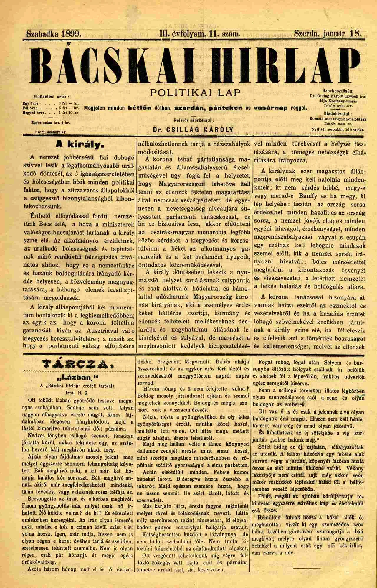 Bácskai Hirlap, 3. évf. 1899. január 18. 11. sz.