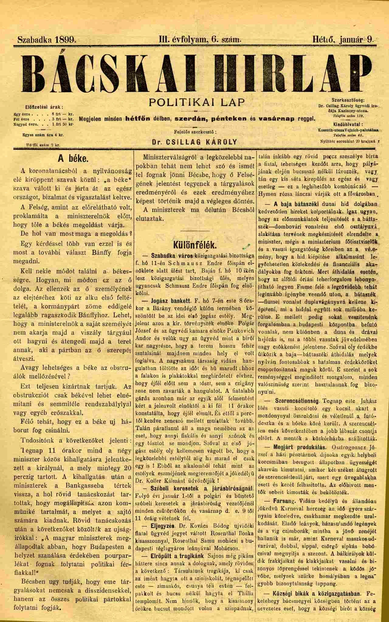 Bácskai Hirlap, 3. évf. 1899. január 9. 6. sz.