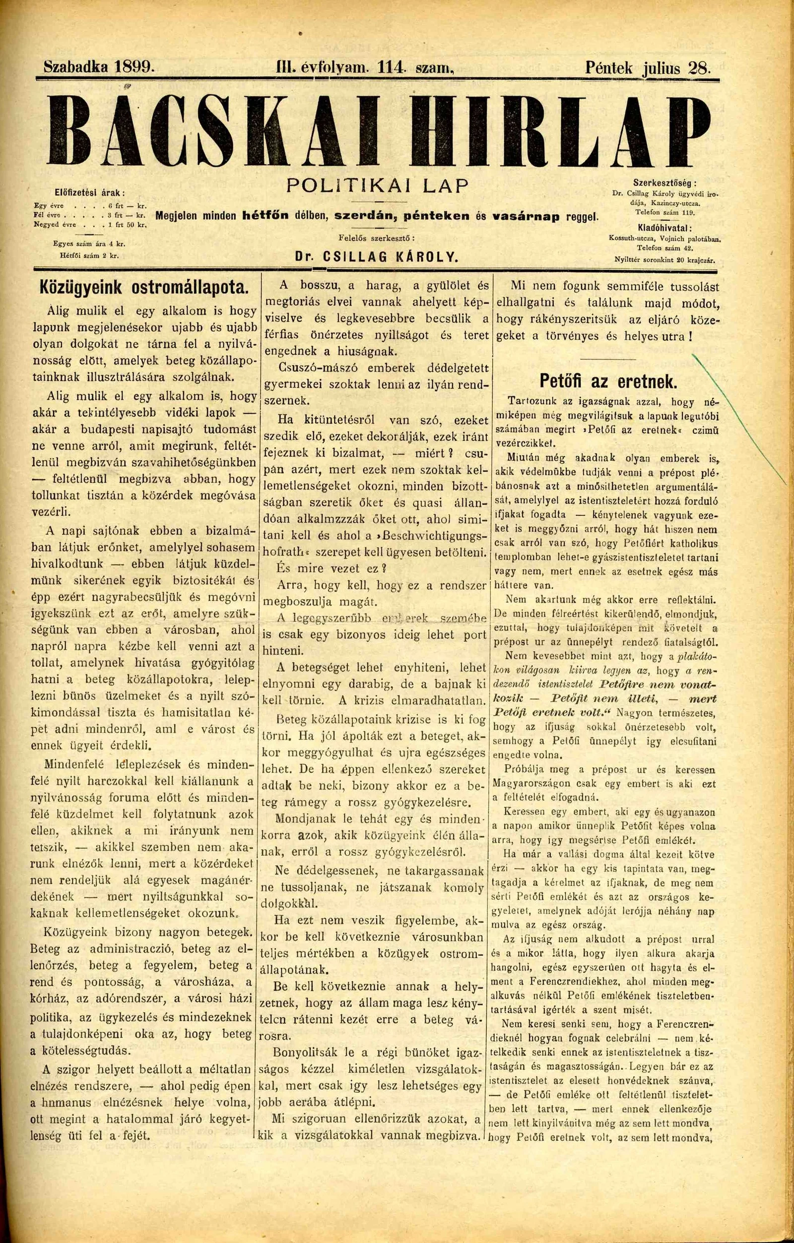 Bácskai Hirlap, 3. évf. 1899. július 28. 114. sz.