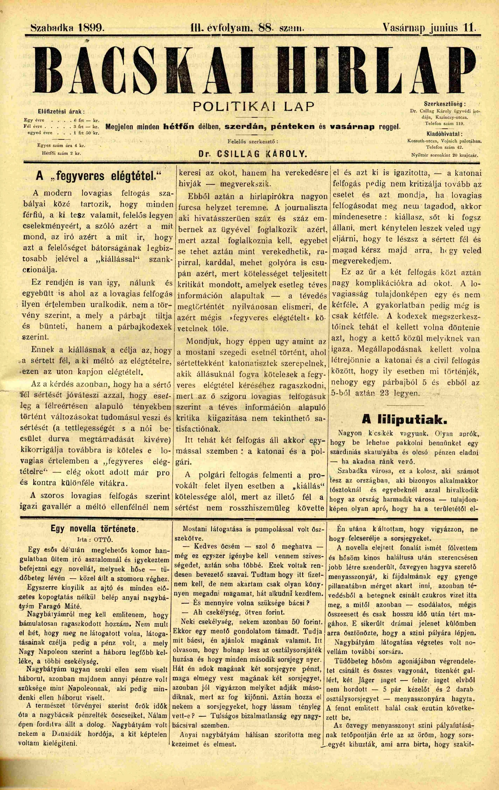 Bácskai Hirlap, 3. évf. 1899. június 11. 88. sz.