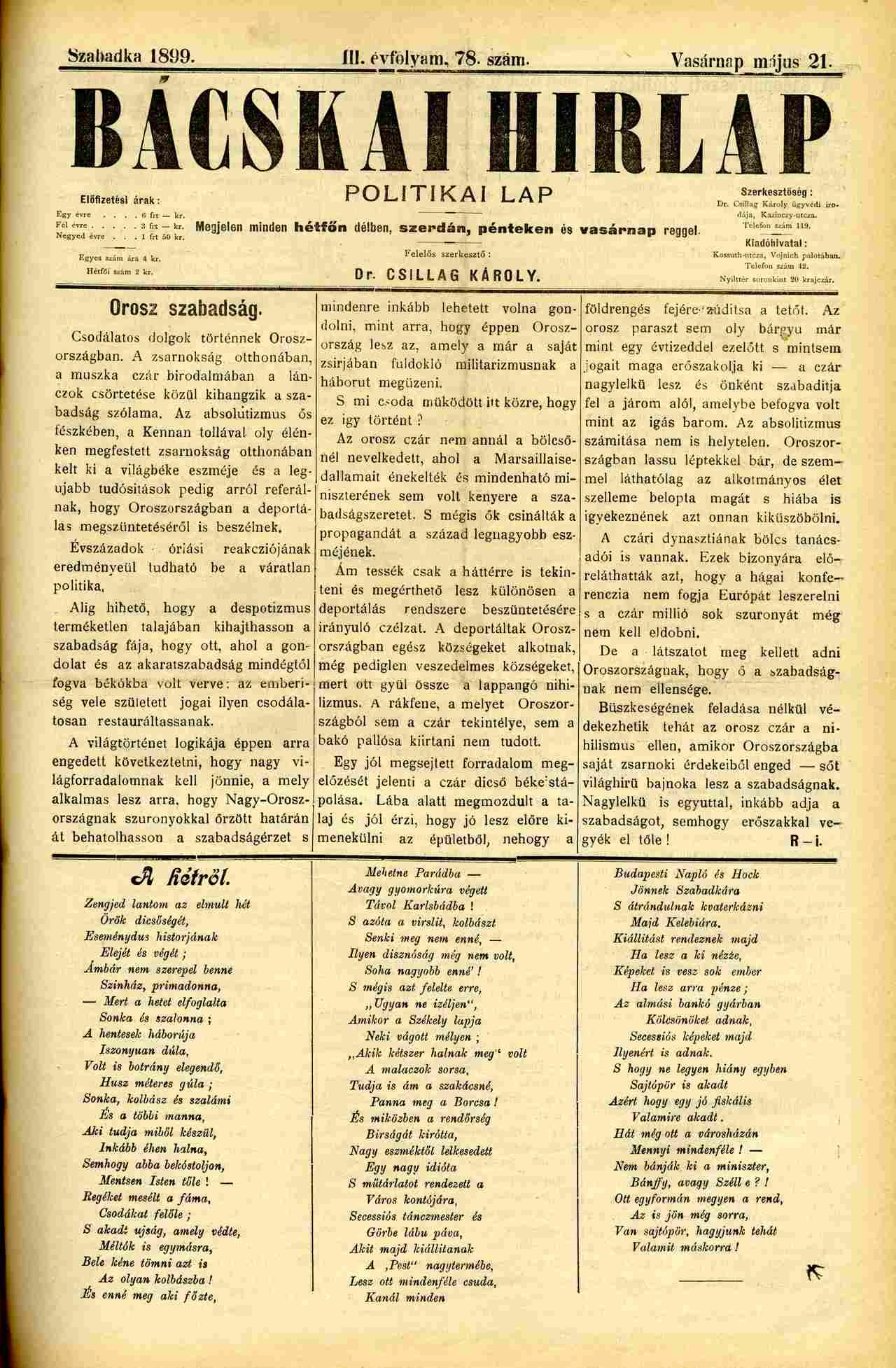 Bácskai Hirlap, 3. évf. 1899. május 21. 78. sz.