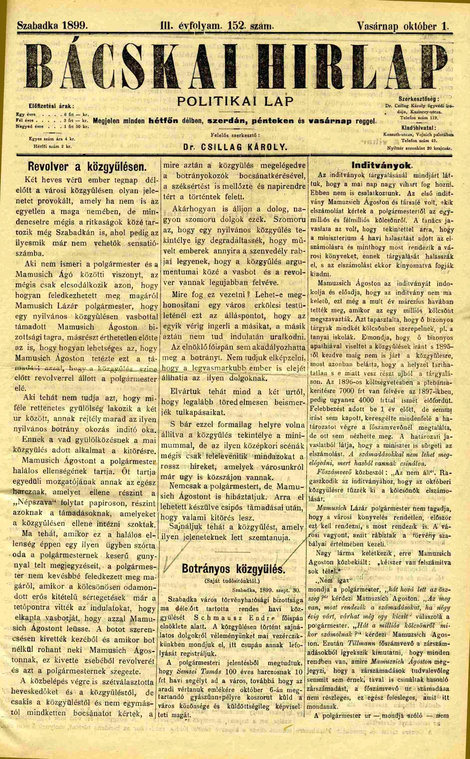 Bácskai Hirlap, 3. évf. 1899. október 1. 152. sz.