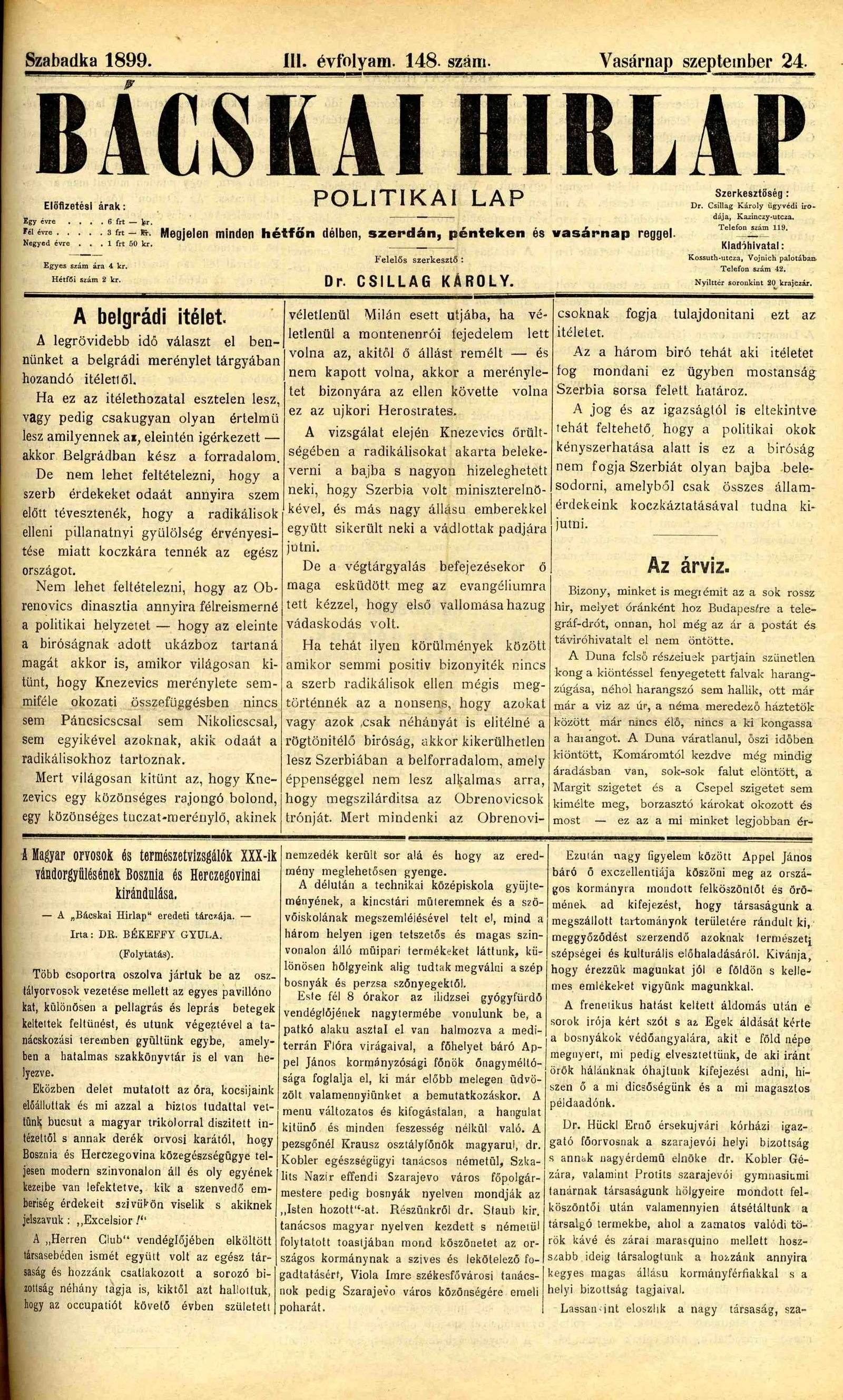 Bácskai Hirlap, 3. évf. 1899. szeptember 24. 148. sz.