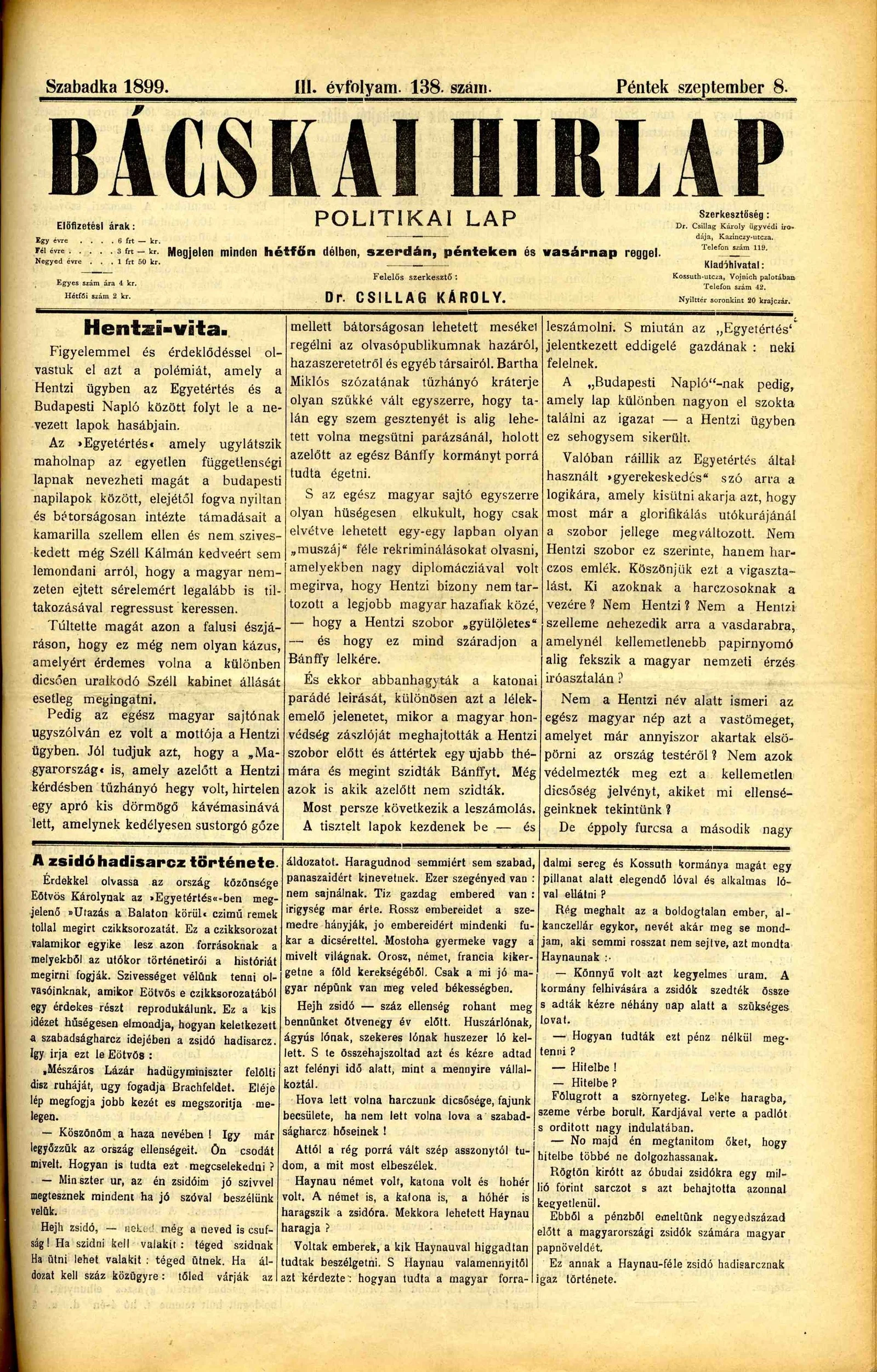 Bácskai Hirlap, 3. évf. 1899. szeptember 8. 138. sz.