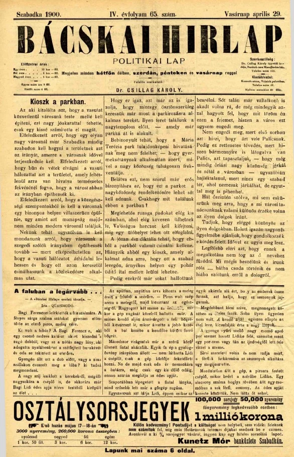 Bácskai Hirlap, 4. évf. 1900. április 29. 65. sz.